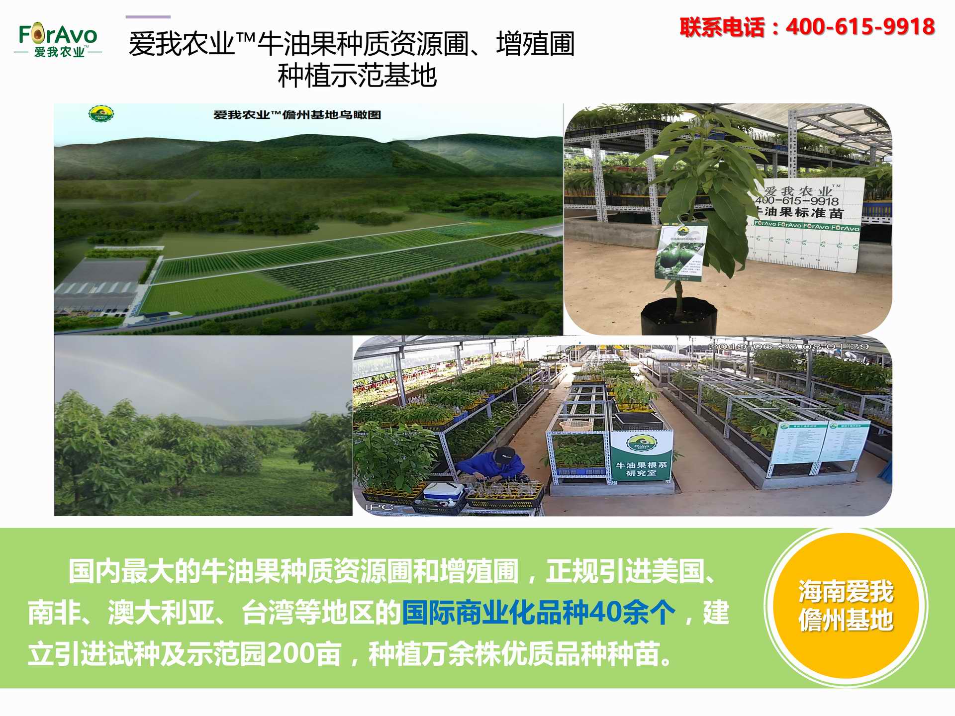 海南愛我農業科技有限公司是一家綜合性的高科技農業發展企業,旗下愛我農業TM致力于打造中國最大最強的牛油果種植企業。依托美國、南非、澳大利亞等擁有百年牛油果繁育、種植歷史以及產業鏈市場的優勢,開展牛油果種苗繁育、種植技術,種植加盟、深加工等產業。結合中國市場,面向廣大苗圃基地、種植農場、合作加工等企業,推出的適合規?;?、標準化的牛油果全產業鏈服務。 Hainan Foravo Agricultural Technology Co., Ltd. is a comprehensive high-tech agricultural development enterprise , dedicated to building the largest and most powerful avocado plantation enterprise in China. Relying on the advantage of avocado nursery, planting history, and the industrial chain over 100 years in the United States, South Africa, Australia, we are carrying out nursery, planting, proce...